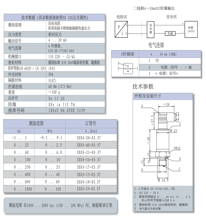 壓力傳感器PR155壓力傳感器只含有少量的有源器件,信號處理芯片和U/I轉(zhuǎn)換器電路。壓力傳感器具有相應(yīng)的保護(hù)電路 有反向連接保護(hù),超載和限制耗散功率等等。壓力傳感器體積小、精度高、重量輕、量程覆蓋范圍寬,適用于各行業(yè)對流體壓力進(jìn)行精密測量。hydrotechnik壓力傳感器以優(yōu)良的可靠性、靈活性和多樣性,廣泛應(yīng)用于石油、化工、冶金、電力、水力、制藥等需要防爆壓力傳感器的測量和控制中。