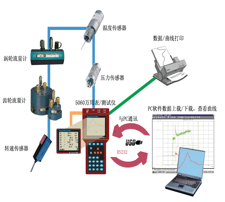 | ◆ 液壓萬(wàn)用表屏幕或通過(guò)PC聯(lián)機(jī)軟件可以顯示各類分析曲線,可以打印報(bào)表,是種完整的現(xiàn)場(chǎng)調(diào)試、采集設(shè)備。 |