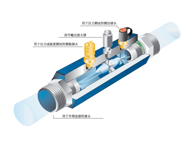 | 流量測量渦輪其實(shí)就是一個(gè)流量計(jì)。hydrotechnik渦輪流量計(jì)RE4的渦輪葉片由流動(dòng)的液流來軸向驅(qū)動(dòng),轉(zhuǎn)速與流速成正比。通過渦輪葉片的旋轉(zhuǎn)來切割磁力線,從而每次產(chǎn)生脈沖信號并用一個(gè)非接觸的傳感器拾取該信號,這些脈沖信號可以直接顯示在與流量計(jì)連接的測量儀表上。渦輪流量計(jì)RE4系列的流量計(jì)的另一個(gè)優(yōu)點(diǎn)是帶有兩個(gè)監(jiān)測點(diǎn),可同時(shí)測量壓力和溫度。 | |