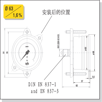 HydrotechnikØ 63機械式壓力表訂貨號: